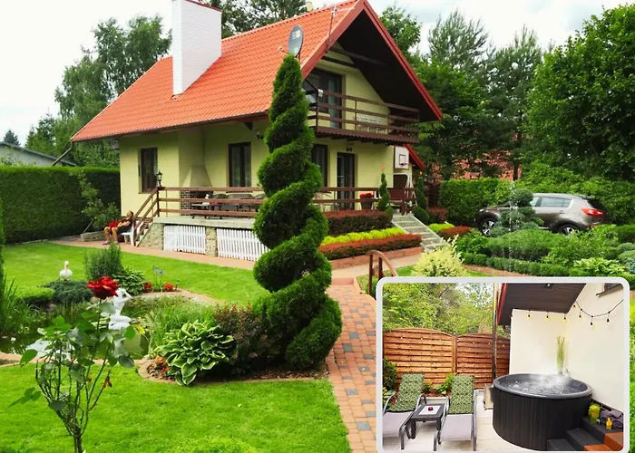 Domek Kamien Nad Jeziorem Z Jacuzzi Villa med 1 sovrum, som ligger 7 km från Lunapark, erbjuder gästerna en terrass. Villan med 1 badrum erbjuder bubbelpool för gästernas avkoppling.